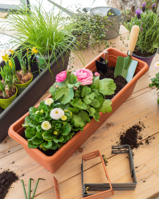 • Das Balkonkasten-Set beinhaltet Blumenkasten mit Bewässerungssystem und einstellbarer Datumsanzeige, die über die letzte Bewässerung oder Düngung Auskunft gibt sowie zwei verstellbare Halterungen