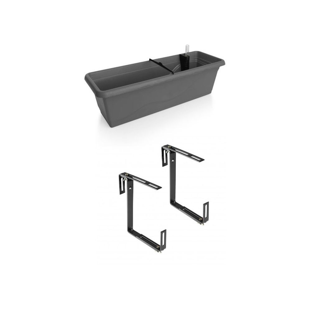 • UV-beständiger und stoßfester Blumentopf mit ca. 60 x 20,5 x 17 cm (LxBxH) in Anthrazit mit farblich abgestimmten, robusten Stahl-Halterungen für Blumenkästen