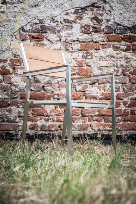 • die Sitzfläche sowie die Rückenlehne und Armlehnen sind aus FSC-zertifiziertem Teakholz gefertigt