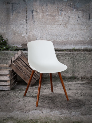 • der Halifax Stuhl besteht aus einer Kunststoffsitzschale in weißer Farbe, mit bequemer und ergonomischer Form