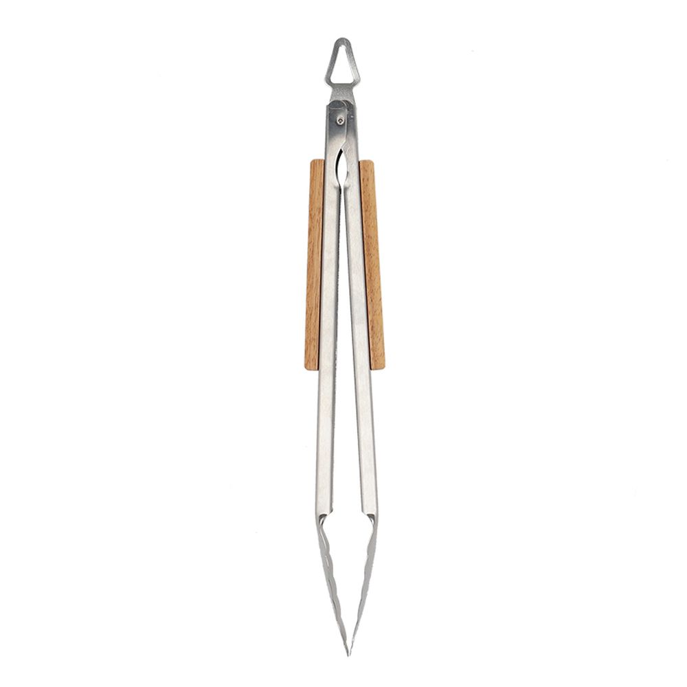 Mit dieser Grillzange aus Edelstahl und Eschenholz lassen sich heiße oder kalte Speisen wenden. Die Zangen sind mit einer praktischen Öse ausgestattet, an der die Zange einfach aufgehangen werden kann. Das geht ganz einfach und Ihre Hände bleiben frei von Ölspritzern und Feuer. Der Verriegelungsmechanismus ist benutzerfreundlich.