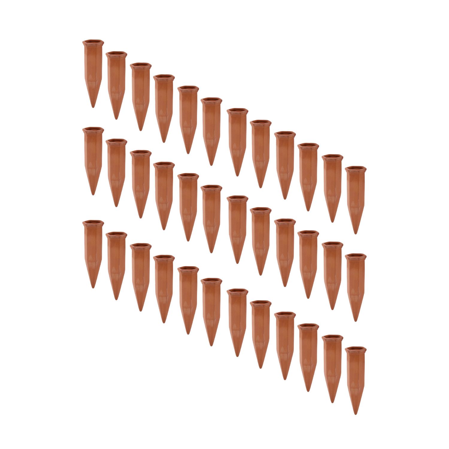 Vor Anwendung: Legen Sie den den Rivanto® Bewässerungskegel für mindestens 10 Minuten in Wasser ein, damit er Wasser ziehen kann. Setzen Sie diesen Bewässerungszapfen anschließend auf eine mit Wasser befüllte Flasche auf. Platzieren Sie die PET- oder Weinflasche dann kopfüber in der Erde neben einer Pflanze. Optimalerweise bereiten Sie in der Erde eine kleine Mulde für den Bewässerungskegel vor. Die Pflanzenwurzeln können sich dann stets die benötigte Menge Wasser ziehen. Ideal, wenn Sie im Urlaub sind. Alternativ empfehlen wir die Rivanto® Olla! Ein rundes Tongefäß mit mehreren Litern Fassungsvermögen für größere Blumenbeete.