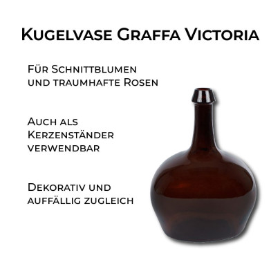 Zeigen Sie Ihre schönste Schnittblume oder die Rose Ihres Verehrers in der Vase Victoria.Diese Vase lässt sich auch als Kerzenständer für rustikale Holztische oder auch für Gartentische, um gemütliche Stunden zu genießen, verwenden. Die auffällige Form fällt auch ohne Inhalt in einem Regal oder einer Vitrine auf.Die Öffnung beträgt 22 mm und bis zu dieser Breite können auch Kerzen verwendet werden.