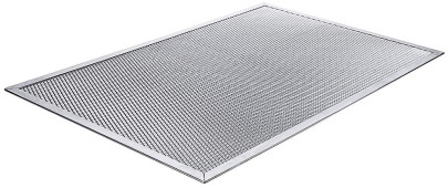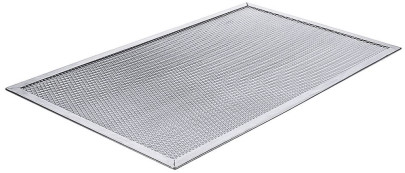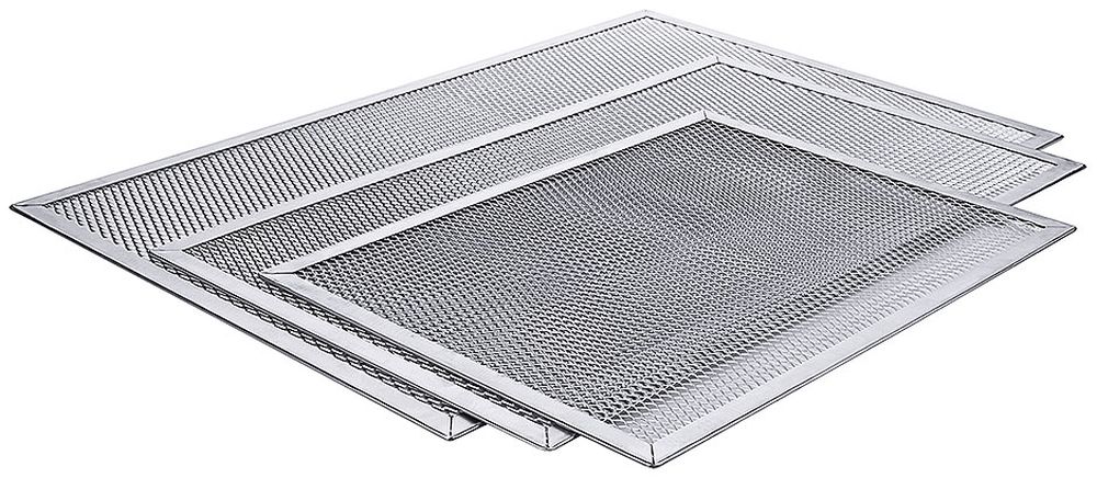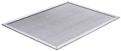 • Der rechteckige Pizza Screen aus Aluminium-Streckmetall beschleunigt die Krustenbildung und sorgt für gleichmäßiges Backergebnis.