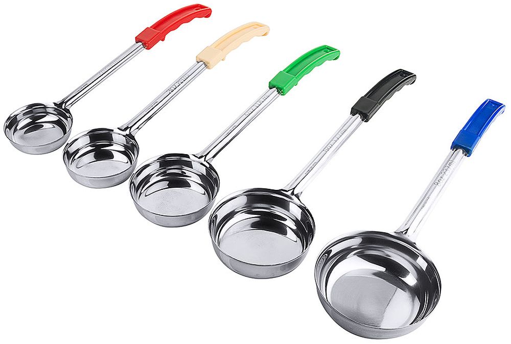 Die Portionslöffel Spoodle sind unverzichtbare Helfer für die professionelle Gastronomie, Catering und Großküchen. Erhältlich in fünf Größen - von 0,06 l bis 0,235 l - ermöglichen sie ein exaktes, hygienisches und effizientes Portionieren verschiedenster Speisen. Gefertigt aus hochwertigem Edelstahl mit Griffen aus farbigem Kunststoff bieten die Löffel eine leichte, dennoch robuste Qualität. Die farbcodierten Griffe erleichtern die schnelle Unterscheidung der Größen im hektischen Küchenalltag. Dank ihrer spülmaschinengeeigneten Eigenschaften sind die Spoodles hygienisch, pflegeleicht und besonders praktisch im Dauereinsatz. Mit unterschiedlichen Fassungsvermögen von kleinen Portionen für Beilagen bis hin zu größeren Mengen für Hauptgerichte sind die Portionslöffel flexibel einsetzbar. Sie eignen sich ideal für Buffets, Kantinen, Caterings oder Restaurants und unterstützen eine saubere und gleichmäßige Speisenausgabe. Die Spoodles kombinieren einfache Handhabung, professionelle Qualität und funktionales Design - eine clevere Lösung für exaktes Arbeiten in jeder Küche.