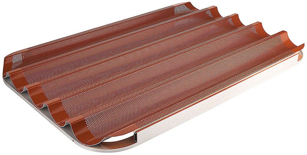 Contacto Baguette-Backblech - 60 x 40 x 3,5 cm, Aluminium 1,5 mm, Silikon rot beschichtet, 2 mm perforiert, 5 Wellen, stabiler Rahmen