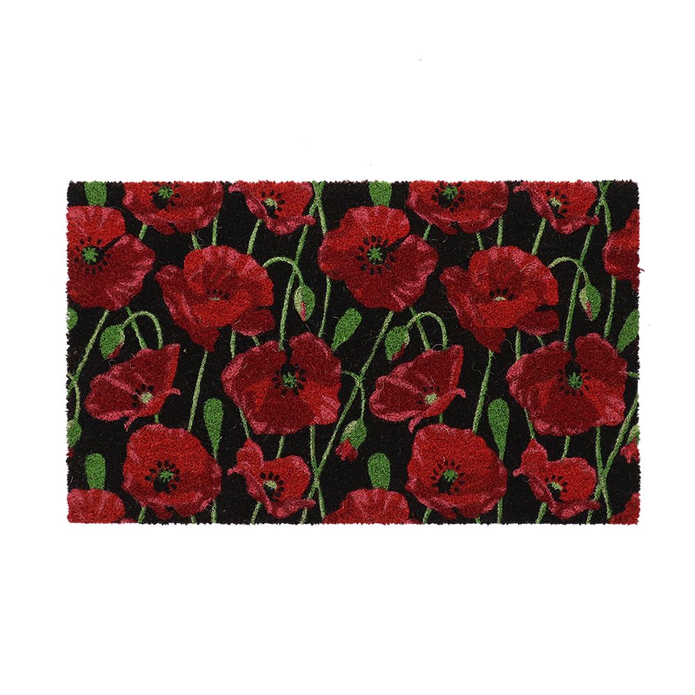 • Türmatte Kokos Mohn L, 75 x 45 x 1,7 cm, aus natürlichen Kokosfasern, fängt zuverlässig Schmutz und Staub auf und heißt Gäste mit leuchtendem Mohnblumenmotiv willkommen – ideal für Innen- und Außenbereiche.