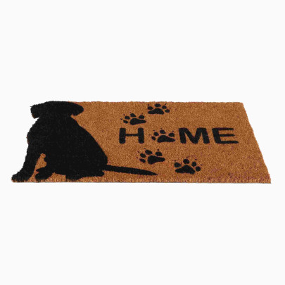 Diese Kokosmatte mit Hunde-Motiv und dem Text Home verschönert jeden Eingangsbereich. Die starken Kokosfasern dieser Matte sorgen dafür, dass die Sohlen von Schuhen und Stiefeln sauber abgetreten werden können. Die Fußmatte hat eine PVC-Rückseite und bleibt daher rutschfest an Ort und Stelle.
