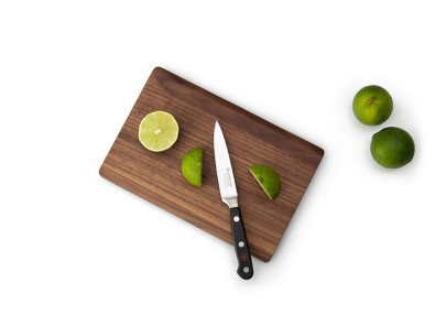 Formschönes Schneidebrett aus hochwertig verarbeitetem, robustem und edlem Walnussholz mit schöner Struktur und natürlicher Farbgebung.