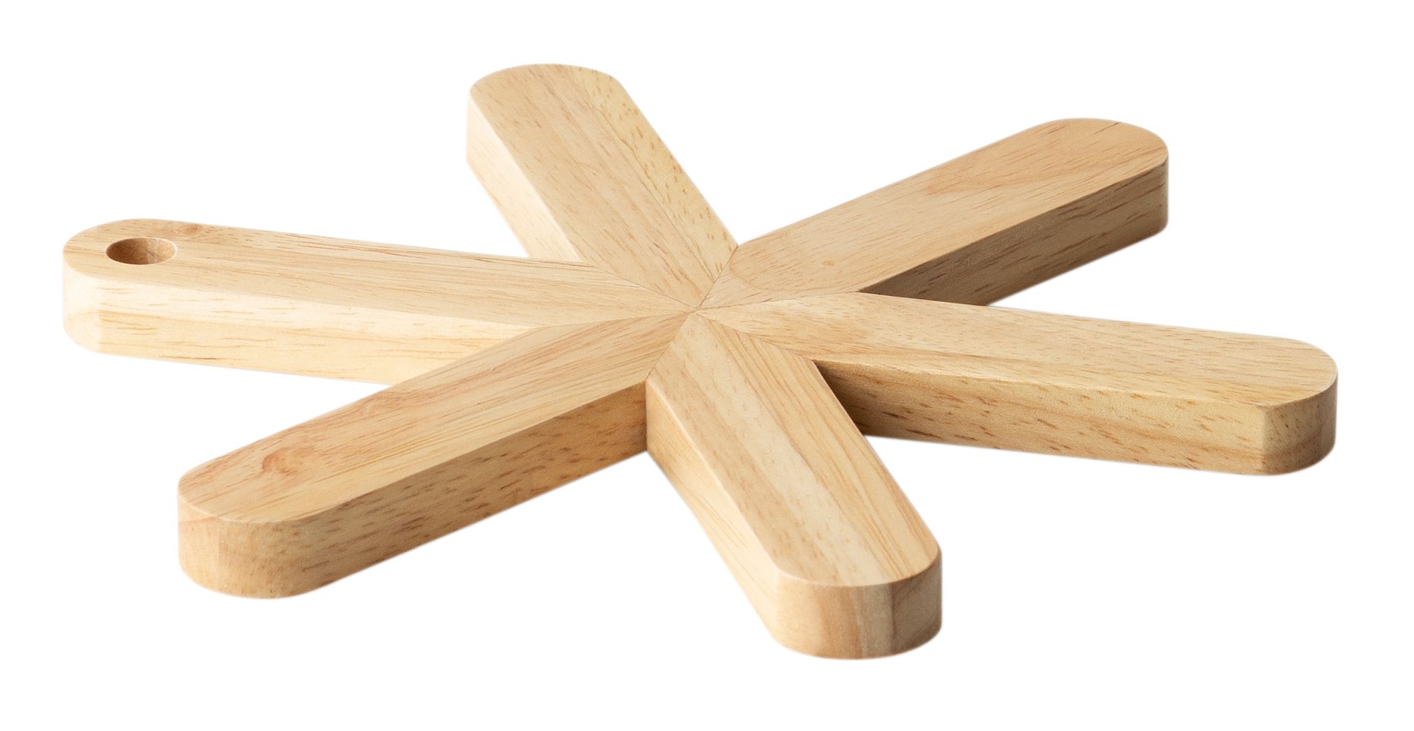 • Robuster Kochtopf-Untersetzer aus natürlichem Gummibaumholz