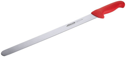 Das Schinkenmesser HACCP mit einer 35 cm langen Klinge aus hochwertigem NITRUM Edelstahl ist speziell für das präzise Schneiden feiner, gleichmäßiger Scheiben konzipiert. Die Klinge ist besonders scharf, langlebig und korrosionsbeständig - ideal für Schinken, Roastbeef, Lachs oder andere große Fleischstücke. Der ergonomisch geformte Griff aus rotem Polypropylen ist HACCP codiert, um klare Hygienezuordnungen im Küchenalltag zu ermöglichen. Durch die Farbkennzeichnung wird das Risiko von Kreuzkontaminationen minimiert, was gerade in professionellen Küchen entscheidend ist. Mit einer Gesamtlänge von 49,5 cm und einer optimalen Balance zwischen Klinge und Griff ermöglicht das Messer ein kontrolliertes, gleichmäßiges Schneiden bei minimalem Kraftaufwand. Die schmale, flexible Klinge gleitet mühelos durch das Schnittgut, ohne die Struktur zu beschädigen. Dank pflegeleichter, hygienischer Materialien und der robusten Bauweise ist dieses Schinkenmesser die ideale Wahl für den intensiven Dauereinsatz in Gastronomie, Catering und Metzgereien.