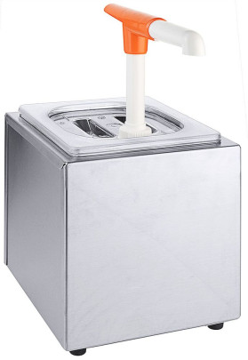 • Der Saucendispenser aus Edelstahl ist allseitig geschlossen und verfügen über einen oder zwei GN 1/6 Behälter aus Polycarbonat - ideal für hygienische Aufbewahrung und Ausgabe zäher Flüssigkeiten. Alternativ auch mit Kühlung erhältlich.
