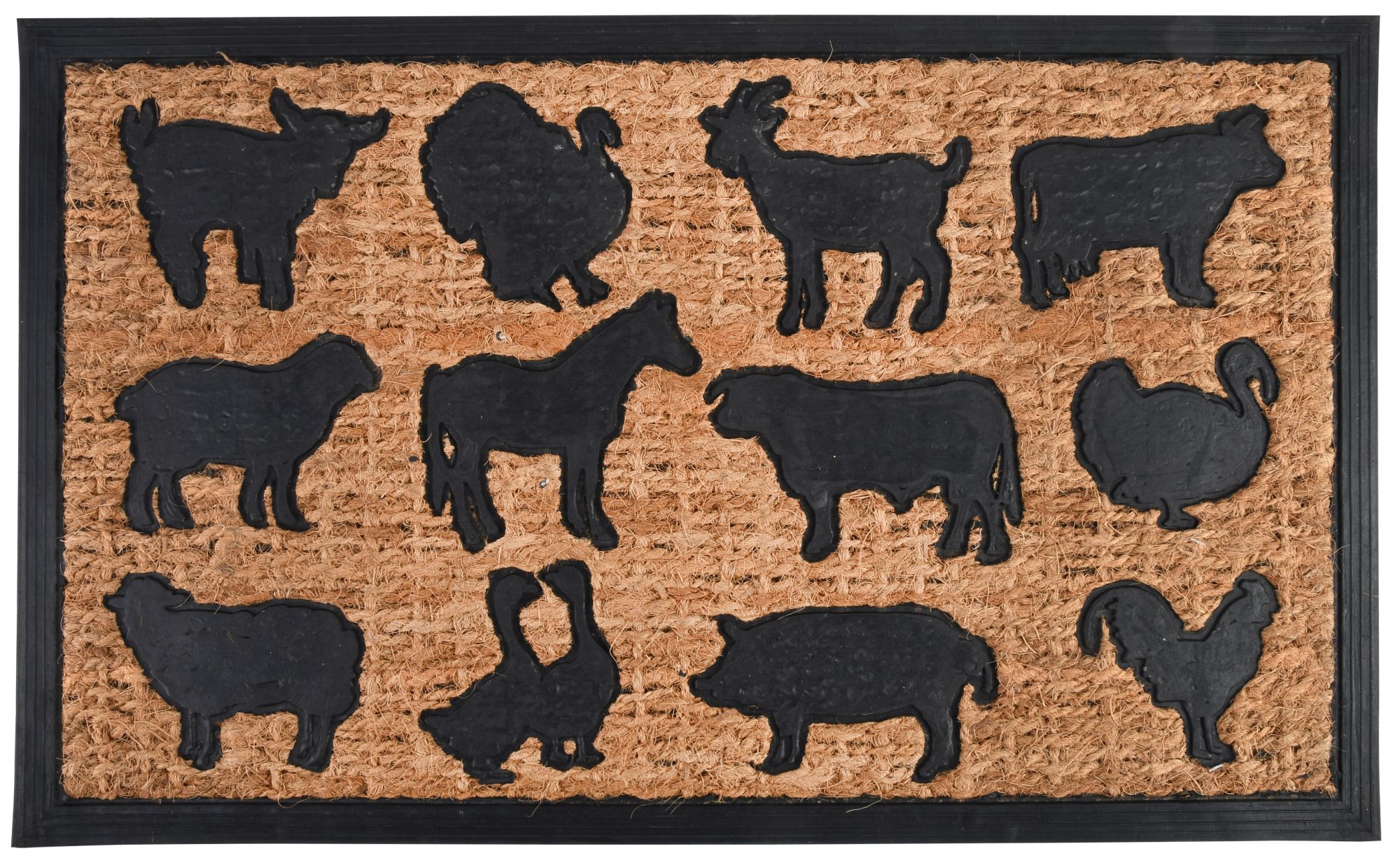 • die Türmatte besitzt eine Unterfläche aus Gummi, auch die verschiedenen Bauernhoftiere sind aus Gummi