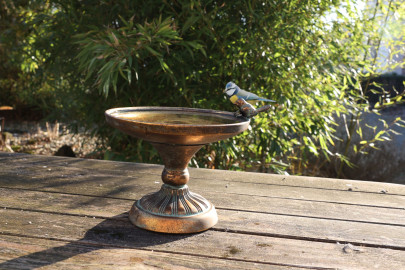 • Große Vogeltränke aus massivem Eisen & Gusseisen mit authentischem Antik-Finish, Maße 232 x 232 x 205 mm – dekorativ und funktional für Garten & Terrasse.