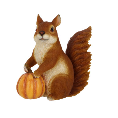 • Handbemalte Oberfläche mit naturgetreuen Farben, feine Fellstruktur des Eichhörnchens und realistische Gestaltung des Kürbisses.