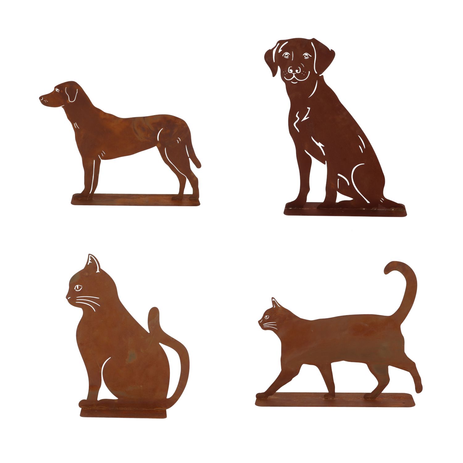 • Detailreich lasergeschnittene Rost Katze sitzend aus stabilem Weichstahl – dekorative Gartendekoration mit natürlichem Charme.