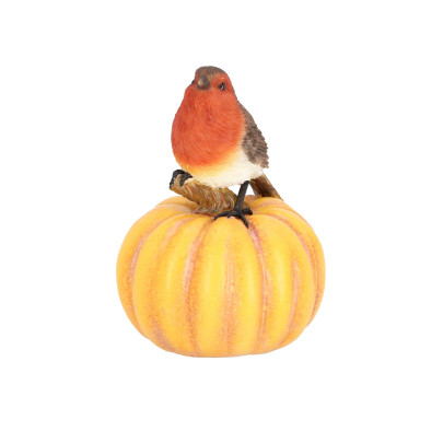 • Handbemalte Oberfläche mit naturgetreuen Farben, detailreiche Darstellung des Rotkehlchens und des Kürbisses für ein harmonisches Gesamtbild.
