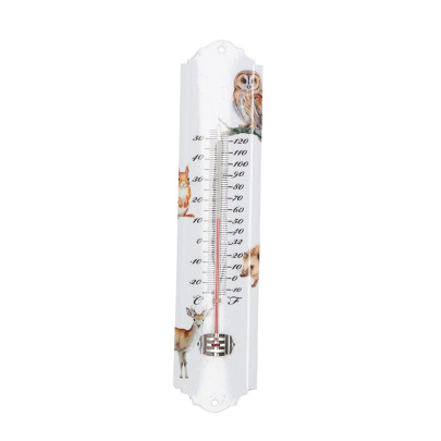 Das Thermometer Aquarell Vögel verbindet praktische Funktionalität mit einem stilvollen Design, das jede Umgebung aufwertet. Der schlichte weiße Hintergrund hebt die detailreichen Aquarellillustrationen der Vögel kunstvoll hervor und macht das Thermometer zu einem dekorativen Blickfang in Garten, Wintergarten, Balkon oder Terrasse. Mit einer Höhe von 29,5 cm und einer Breite von 6,3 cm bietet es eine ideale Größe, um jederzeit die Temperatur gut ablesen zu können. Dank der klaren und übersichtlichen Skalen in Celsius und Fahrenheit behalten Sie die aktuellen Wetterbedingungen stets im Blick. Gefertigt aus robustem Eisen, Glas und Edelstahl ist das Thermometer wetterbeständig und auf eine lange Lebensdauer ausgelegt. Die hochwertige Verarbeitung sorgt für Zuverlässigkeit bei Regen, Wind und Sonnenschein. Durch die praktische Aufhängevorrichtung lässt es sich leicht an Wänden, Zäunen oder Gartenhäusern anbringen und flexibel platzieren. Das Thermometer Aquarell Vögel ist nicht nur ein nützliches Messinstrument, sondern auch ein dekoratives Accessoire, das Natürlichkeit und Funktionalität harmonisch vereint. Ob für den Eigengebrauch oder als Geschenkidee für Vogelliebhaber – dieses Thermometer überzeugt durch Qualität, Design und Nutzen gleichermaßen.