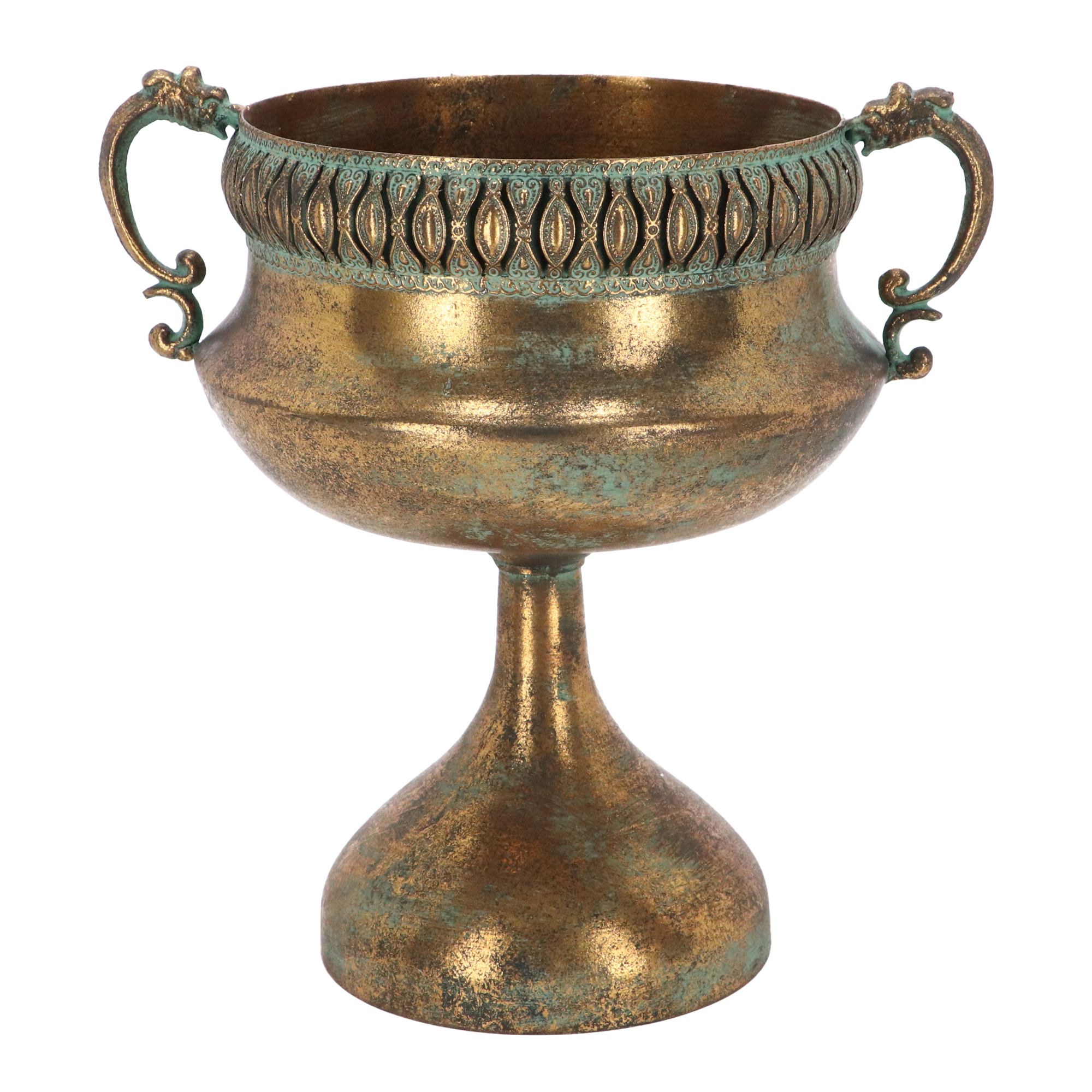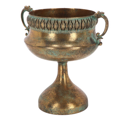 Die Aged Metal französische Urne Höhe 34 cm vereint zeitlose Eleganz mit rustikalem Charme und ist das perfekte Highlight für anspruchsvolle Wohn- und Gartenkonzepte. Hergestellt aus massivem Eisen und Gusseisen, beeindruckt sie durch ihr authentisches Vintage-Finish, das ihr eine unverwechselbare Patina und einen Hauch französischer Nostalgie verleiht. Mit den großzügigen Maßen von 320 x 250 x 338 mm bietet die Urne ausreichend Platz für Trockenblumen, Zweige oder kunstvolle Dekorationen. Ihr klassisches Design fügt sich mühelos in unterschiedliche Einrichtungsstile ein – von rustikal über Industrial bis hin zum romantischen Shabby Chic. Ob als markantes Einzelstück oder in Kombination mit anderen Größen dieser Serie, die Urne sorgt stets für einen dekorativen Blickfang. Die hochwertige, schwere Verarbeitung garantiert Langlebigkeit, während die pflegeleichte Oberfläche für unkomplizierte Handhabung sorgt. Ideal geeignet für Wohnzimmer, Terrasse oder Eingangsbereich – diese französische Urne setzt überall ein stilvolles Statement.