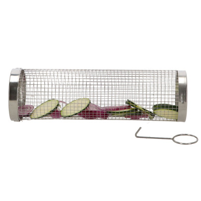 • Rollender Grillkorb aus Edelstahl für gleichmäßiges Garen von Gemüse, Fleisch, Fisch und Snacks.
