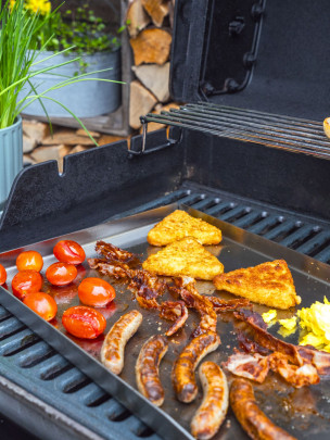• Vielseitige Einsatzmöglichkeiten: Auf der Kochfelderweiterung kann problemlos mit Edelstahlwerkzeugen gearbeitet werden. Anschließend wird die Plancha Platte problemlos mit einer Edelstahl-Grillbürste oder einem Spachtel gereinigt.