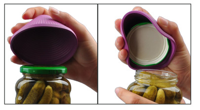 Der DREHFIX öffnet mit wenig Kraftaufwand jeden Schraubdeckel. Einfach auf den Deckel auflegen und drehen, durch die geriffelte Oberfläche rutschen sie auch nicht ab, schon lassen sich die Behälter ganz leicht aufdrehen, ohne den Deckel zu beschädigen, so können sie die Gläser mit Deckel wieder verwenden.