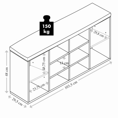 • Kompaktes und platzsparendes Design mit den Maßen 103,5 x 29,5 cm und 48 cm Höhe für mehr Ordnung in kleinen und großen Räumen.