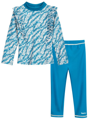 Playshoes Kinder UV-Schutz Bade-Set Blümchen Langarm und Legging Badebekleidung Badehose und Oberteil für Mädchen