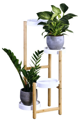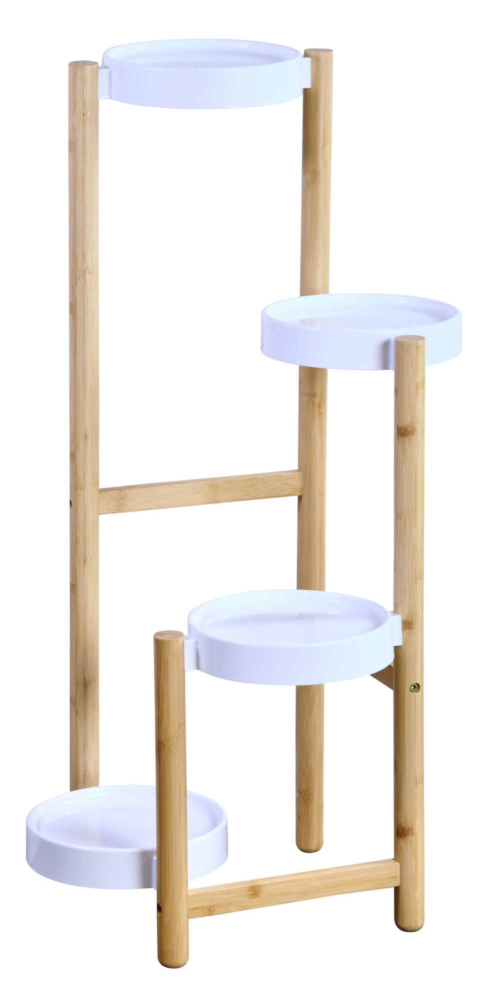 • Moderner Blumenständer aus FSC-zertifiziertem Bambus mit vier robusten Kunststoffablagen, ideal zur stilvollen Präsentation von Pflanzen, Dekoration oder Accessoires.