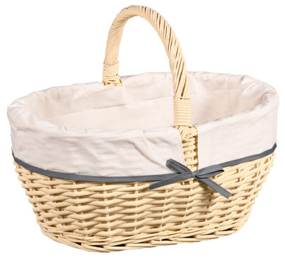 • Eleganter Einkaufskorb aus robustem, weiß lackiertem Weidengeflecht mit eingebundenem Textilfutter für charmante Optik und praktischen Nutzen.