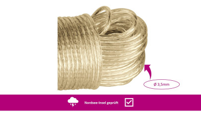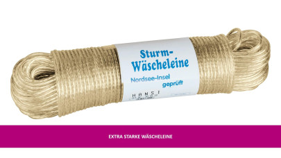 Mit dieser Wäscheleine die nicht umsonst den Namen „Sturm“ trägt haben Sie ein Produkt welches selbst extremsten Bedingungen standhält. Die Seele des Produkts besteht aus einem starken Stahlseil welches von einem hochwertigen Kunststoffummantelung ergänzt wird. Die Materialstärke beträgt 3,5 mm bei einer Länge von 50 Metern, welche mit „Nordsee-Insel geprüft“ auch bei extremen Witterungsbedingungen eine robuste Figur macht, ohne zu reißen.