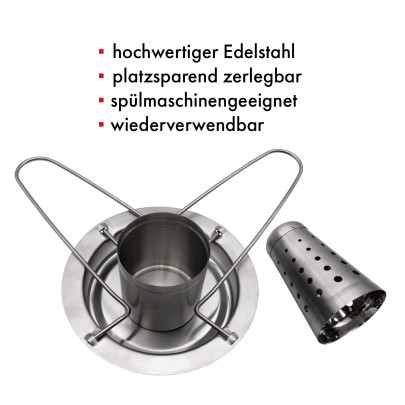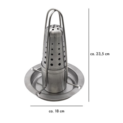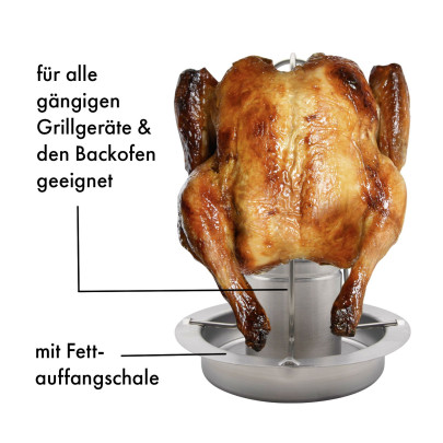Bereiten Sie zu Hause ein perfekt gegartes Brathähnchen zu - einfach, bequem und ohne zusätzliches Zubehör. Der culinario Hähnchenbräter aus rostfreiem Edelstahl ist das praktische Küchentool für alle, die Geflügel mit knuspriger Haut und saftigem Fleisch lieben. Die robuste Edelstahl-Konstruktion sorgt für Stabilität und gleichmäßige Hitzeverteilung - ideal für Hähnchen, Ente oder sogar eine kleine Pute. Der integrierte Auffangbehälter fängt zuverlässig herabtropfendes Fett und Fleischsaft auf. So bleibt der Ofen sauber, während Sie aus dem Sud direkt eine schmackhafte Soße zubereiten können. Dank des durchdachten Designs ist der Bräter leicht zerlegbar und lässt sich unkompliziert reinigen - sowohl von Hand als auch in der Spülmaschine. Egal ob im Backofen oder auf dem Grill: Mit dem culinario Hähnchenbräter gelingt das Geflügelgericht mit wenig Aufwand. Einfach würzen, aufsetzen, garen - und schon steht ein hausgemachtes Gericht auf dem Tisch, das Familie und Gäste begeistert. Ein durchdachtes Küchenzubehör für alle, die Wert auf einfache Handhabung und gute Ergebnisse legen - ideal für den Alltag und besondere Anlässe.