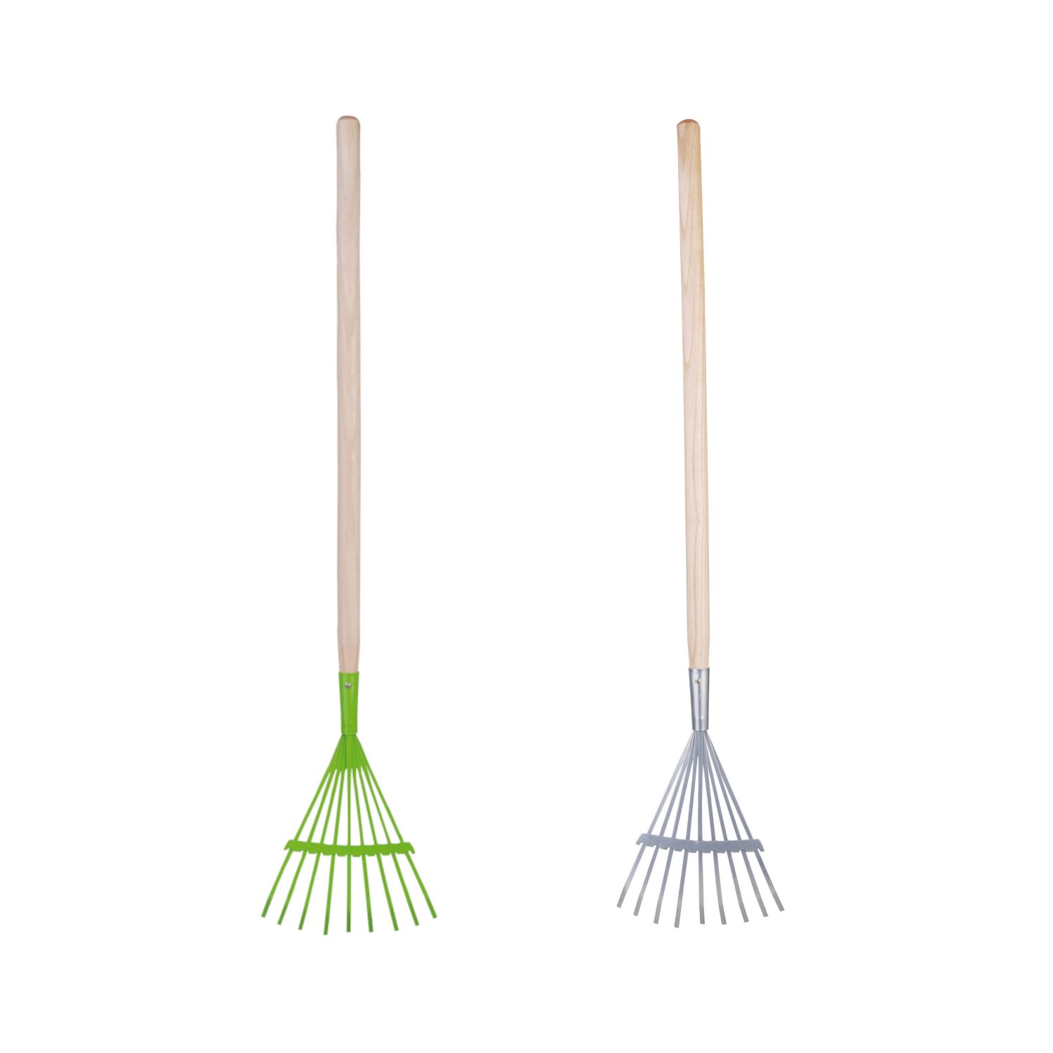 Esschert Design Kinderrechen, Laubrechen für Kinder mit Holzstiel, ca. 19 cm x 2,5 cm x 83 cm, verschiedene Farben