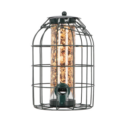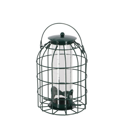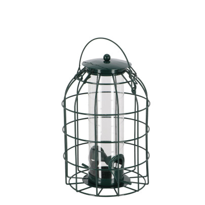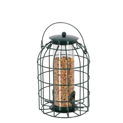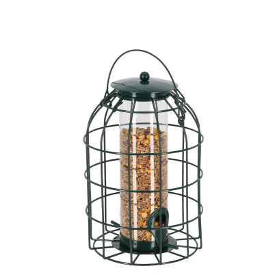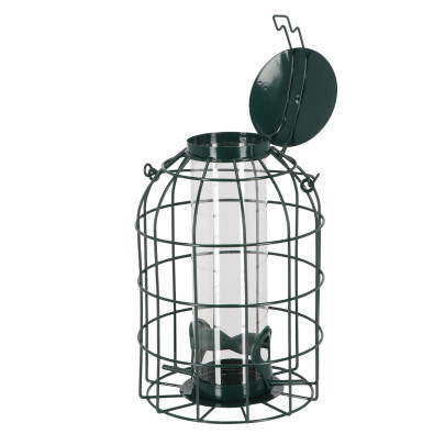 • Robuster Schutzsilo mit Spezialhalterung, der Streufutter vor Krähen, Eichhörnchen und Regen schützt.