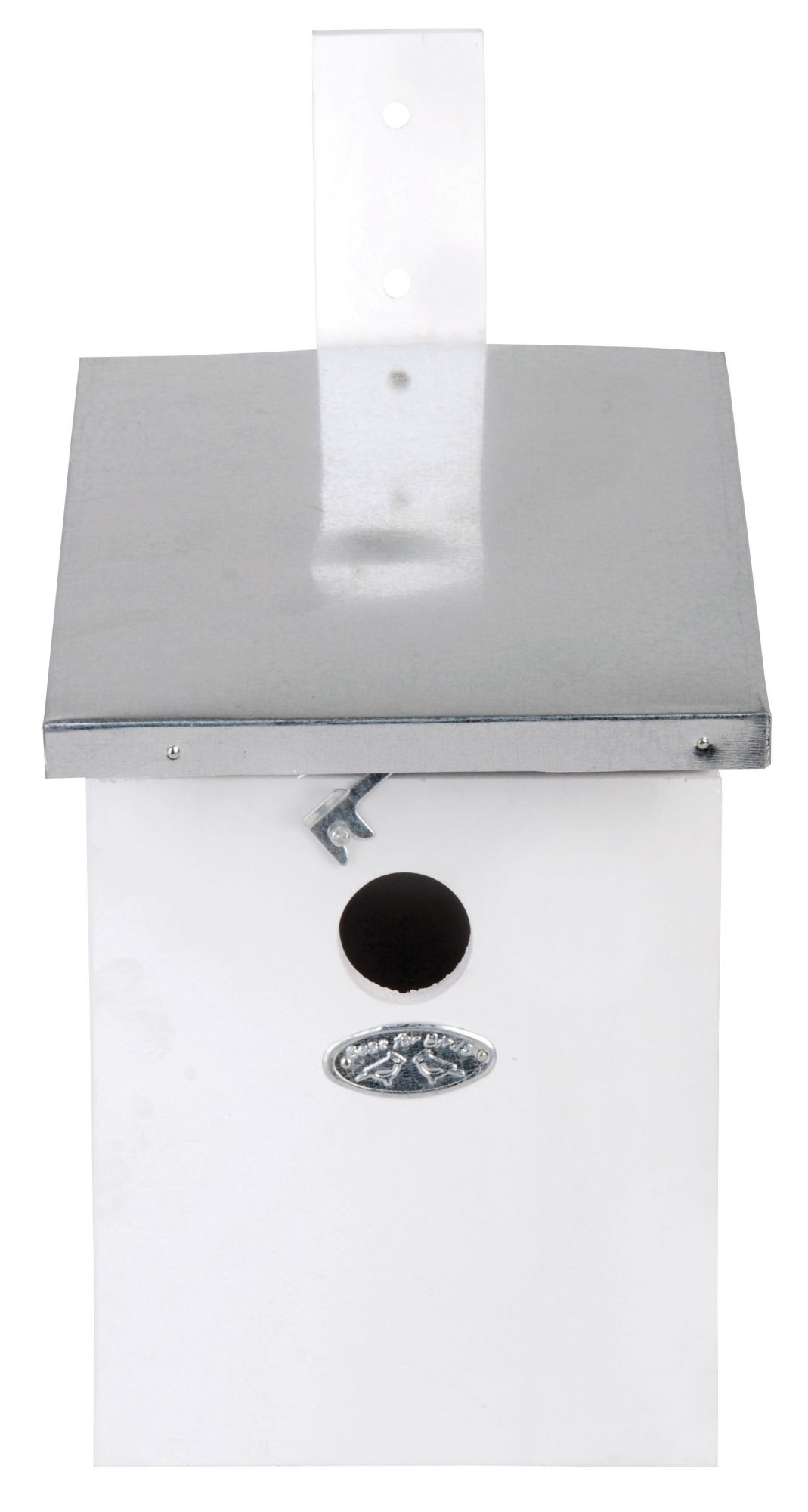 Mit diesem Nistkasten aus dem Hause Esschert Design bieten Sie Vögeln in Ihrem Garten Schutz und sich selbst die Chance das verhalten der gefiederten Tiere zu beobachten. Tip: mindestens 1,8m über dem Boden aufhängen mit mindestens 10m Abstand zum nächsten Nisttopf. Nicht in der vollen Sonne und am besten an der Nordseite eines Baums aufhängen. Topf im Herbst mit warmem Wasser und Bürste reinigen.