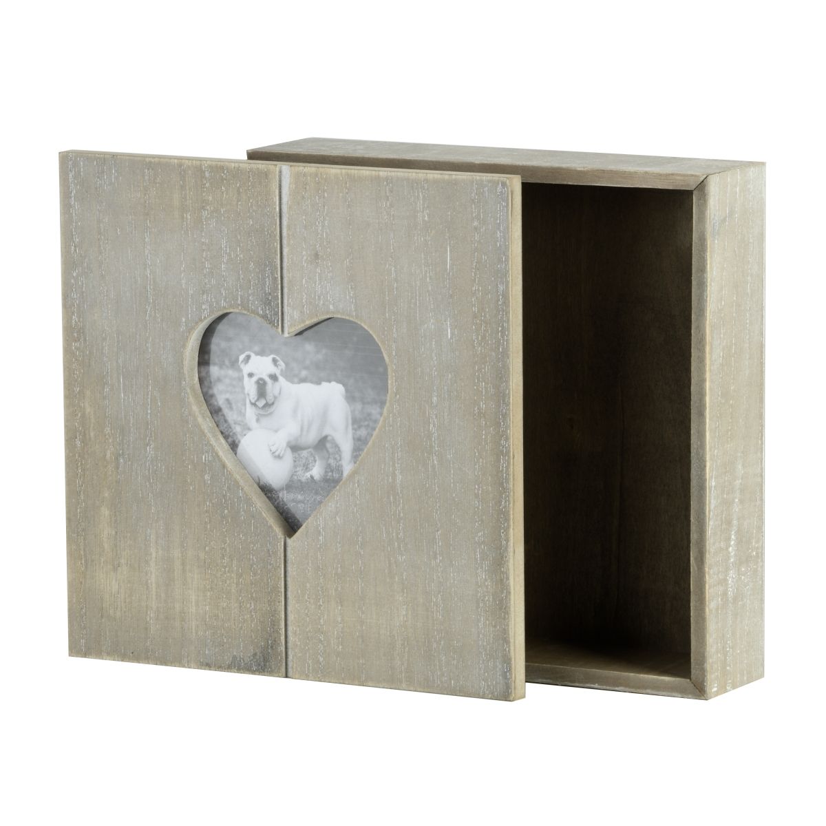 Suchen Sie sich Ihr Motiv für den Deckel aus! Platzieren Sie ein Bild von 10 x 10 cm Ihrer Wahl, auf der Innenseite des Deckels. Durch den Herzförmigen Ausschnitt wird dieses Bild nach außen präsentiert.