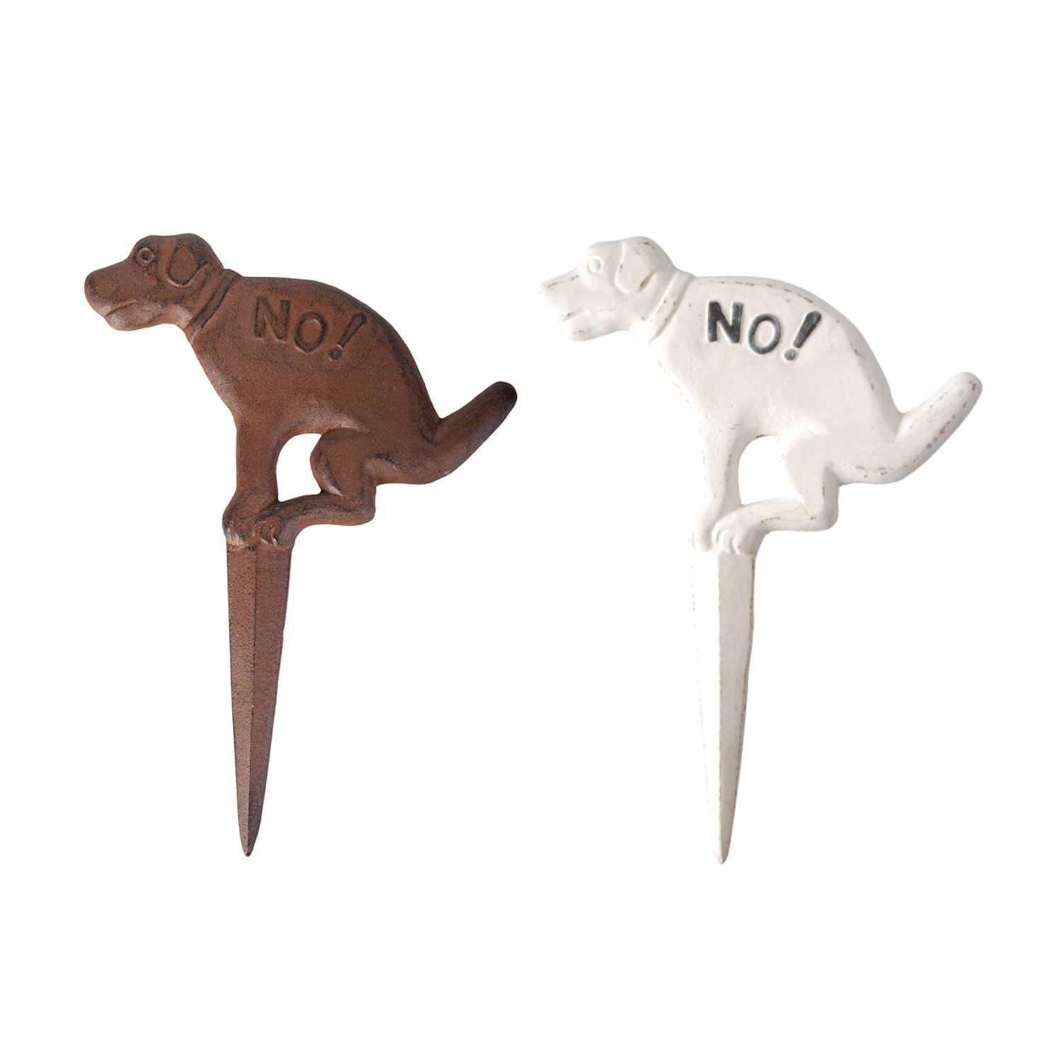 Mit diesem Hinweisschild aus Gusseisen von Esschert Design in Form eines Hundes mit der Aufschrift NO machen Sie Hundebesitzer auf nette Art und Weise darauf aufmerksam, dass deren vierbeinige Lieblinge Ihren Garten nicht als Toilette benutzen sollen.