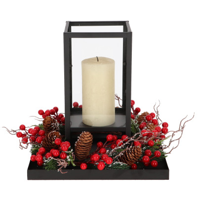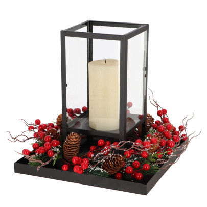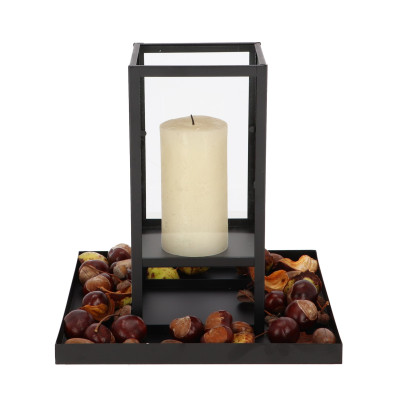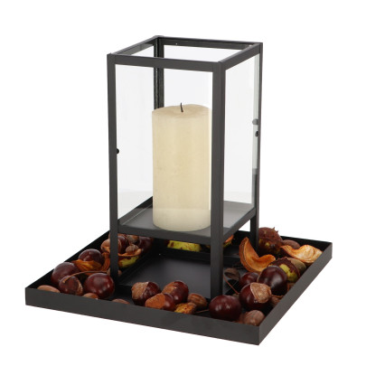 Das Tischwindlicht S vereint Eleganz und Funktionalität und ist die perfekte Ergänzung für Ihre Tischdekoration. Das schwarze Metallgestell in Kombination mit klarem Glas schafft ein zeitloses Design, das sich harmonisch in jeden Wohnstil einfügt. Das erhöhte Plateau bietet nicht nur eine stabile Basis, sondern auch ausreichend Fläche, um die Laterne saisonal individuell zu dekorieren – ob mit Blättern, Blüten, Tannenzweigen oder kleinen Deko-Objekten. Die Kerze im Inneren wird durch das Glas vor Wind geschützt, sodass stimmungsvolles Licht sicher und zuverlässig genossen werden kann. Ideal für den Esstisch, das Sideboard, den Balkon oder die Terrasse, sorgt dieses Tischwindlicht für eine behagliche Atmosphäre bei jedem Anlass. Die kompakte Größe von 27 x 27 x 27,5 cm macht es flexibel einsetzbar, während das robuste Material aus Eisen, Glas und EVA Langlebigkeit garantiert. Ob als Geschenkidee oder für die eigene Tischdekoration – dieses Windlicht setzt dekorative Akzente und schafft gemütliche Lichtmomente.