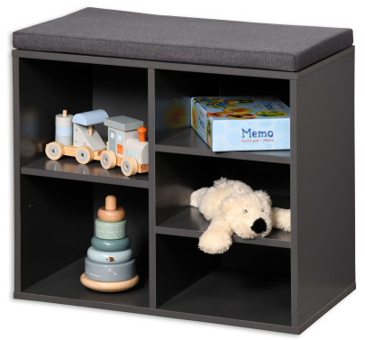 • Praktische Schuhschrank Kombi mit bequemem Sitzkissen. Auf der Sitzbank lassen sich die Schuhe direkt anziehen