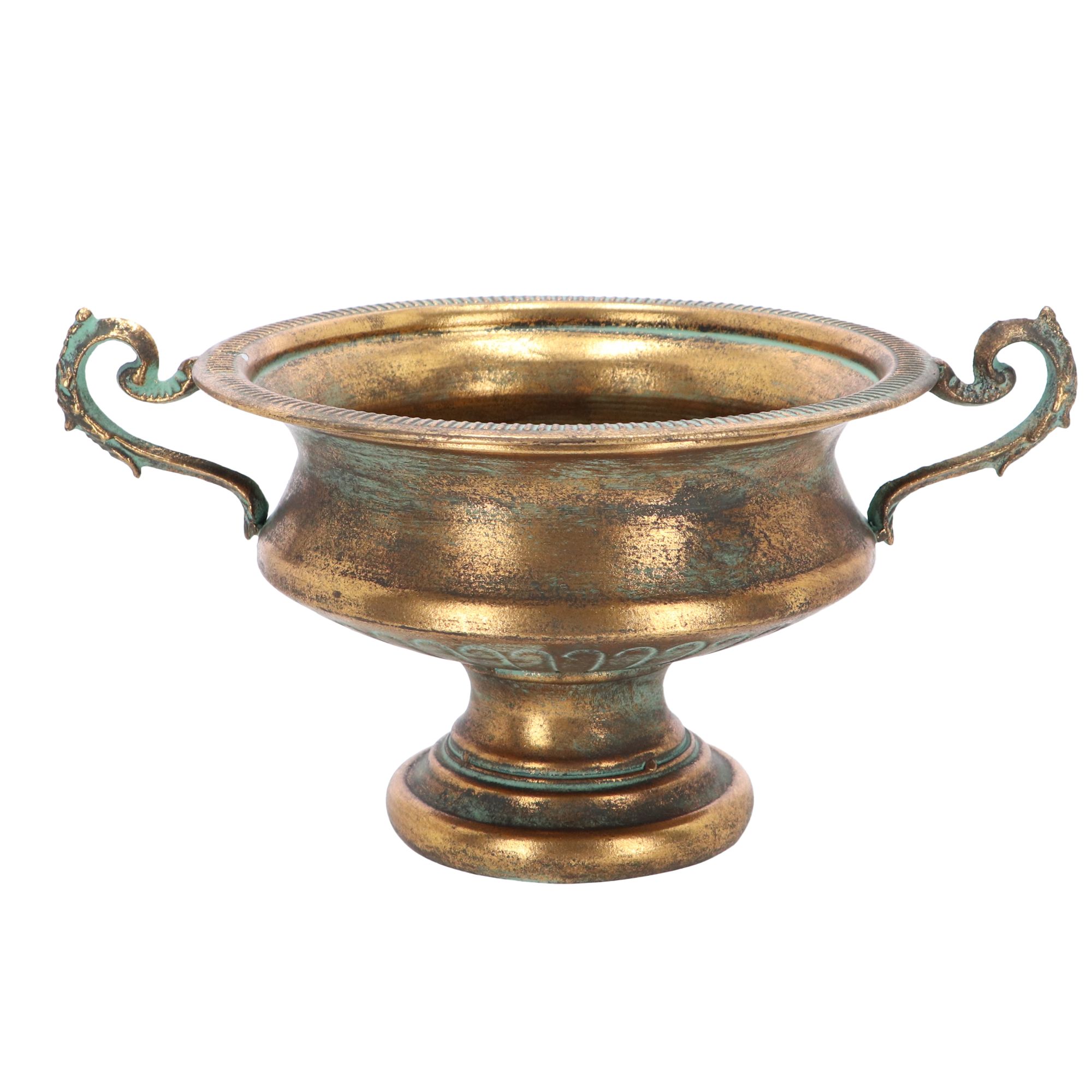 Die Aged Metal französische Urne Höhe 21 cm ist ein exklusives Dekorationsstück, das zeitlose Eleganz und rustikalen Charme vereint. Gefertigt aus einer stabilen Kombination aus Eisen und Gusseisen, besticht sie durch ihre charakteristische Vintage-Oberfläche mit gealterter Patina, die jedem Raum eine besondere Note verleiht. Mit großzügigen Maßen von 409 x 297 x 216 mm ist sie ideal, um Trockenblumen, dekorative Zweige oder saisonale Arrangements eindrucksvoll zu präsentieren. Dank ihres vielseitigen Designs fügt sich die Urne mühelos in rustikale, industrielle oder französisch inspirierte Einrichtungsstile ein. Sie kann als markantes Einzelstück in Szene gesetzt oder mit weiteren Größen dieser Serie zu einem harmonischen Ensemble kombiniert werden. Die massive Bauweise sorgt für Langlebigkeit und Stabilität, während die pflegeleichte Oberfläche eine einfache Handhabung garantiert. Ob im Wohnzimmer, Eingangsbereich oder auf der überdachten Terrasse – diese Urne ist ein edler Blickfang und Ausdruck von Stilbewusstsein und Qualität.